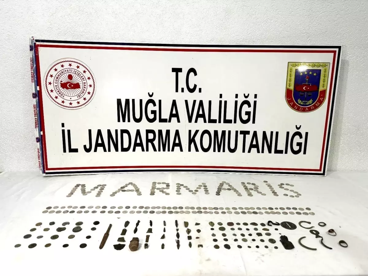 Muğla'nın Marmaris ilçesinde bir ihbarı değerlendiren jandarma ekipleri Adaköy Mahallesi'nde bir ticari takside yolcu olarak bulunan şahısların çantasına yaptığı aramada çok sayıda tarihi eser niteliği taşıyan obje ve sikke ele geçirdi. Şahıslar tarihi eser niteliğindeki malzemelerle birlikte gözaltına alındı.