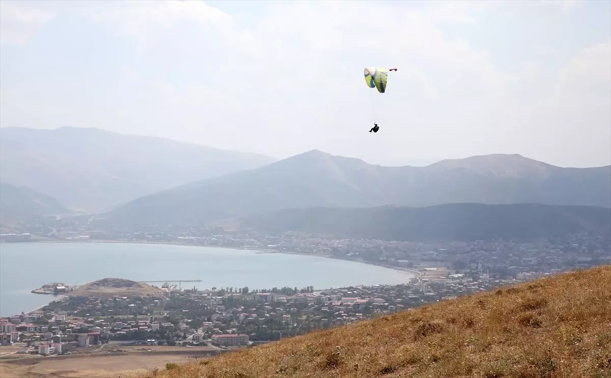 Yumurtatepe köyünden atlayış yapan paraşütçüler, Nemrut Dağı ve Van Gölü manzarası eşliğinde Tatvan semalarında uçuş gerçekleştirdi.