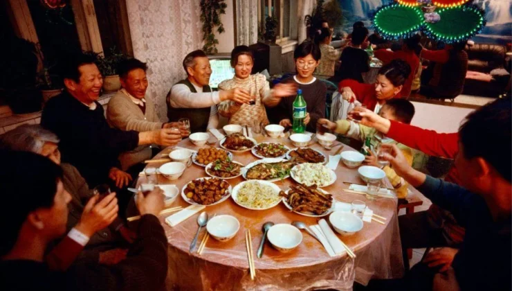 Aileler ve arkadaşlar bir araya gelerek, bir sonraki yıl için şans getirdiğine inanılan Çin eriştesi, Çin mantısı, pirinç keki, turp keki, balık ve mandalina yiyor.