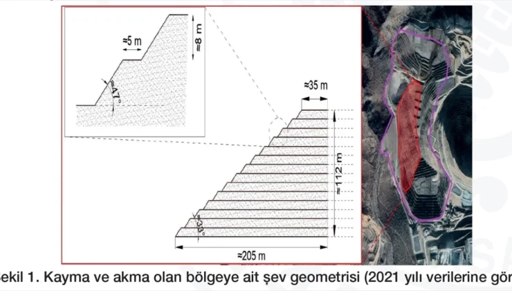 Üniversite tarafından paylaşılan raporda, Erzincan’daki altın madeni ocağında yaşanan durum incelendiğinde, olayın yığın liçi yapılan bölgedeki şevin (eğimli yüzey) kaymasıyla gerçekleştiğinin anlaşıldığı belirtilerek, “İliç’teki yığın liçi sahası, 2021 yılı Google Earth uydu bilgilerine göre, her biri 8 metre yüksekliğe sahip 31 basamaktan oluşmakta olup, genel şev eğimi 2,5Y: 1D şeklindedir. Sahada yığın liçi için oluşturulmuş olan şevin, şev kaymasına sebep olan kısmının ise yine aynı verilere göre 8 metre yüksekliğindeki 14 basamaktan oluştuğu anlaşılmaktadır.” değerlendirmesinde bulunuldu.